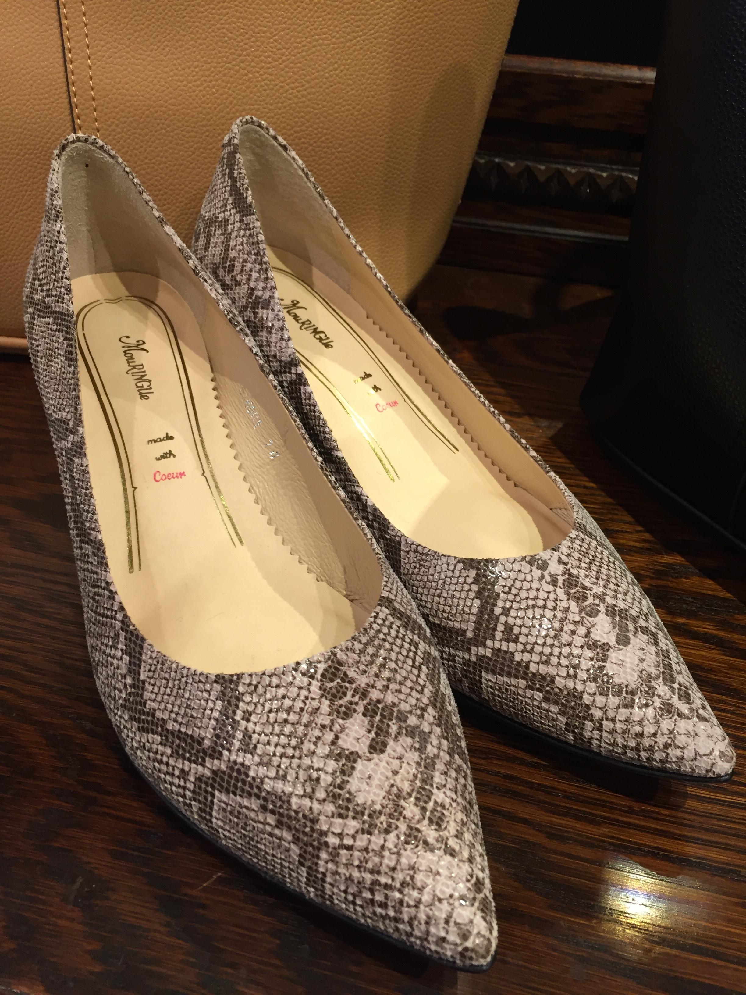 パイソンのパンプス 本革の快適なパンプスはおしゃれなパイソンプリントです ふかふかのインソールで、これなら一日中履いてもいい疲れませんよぉ〜 限定数なので、気になる方はお早めに店頭でチェックされてくださいませー 無地のネイビーもございます 2016年9月28日