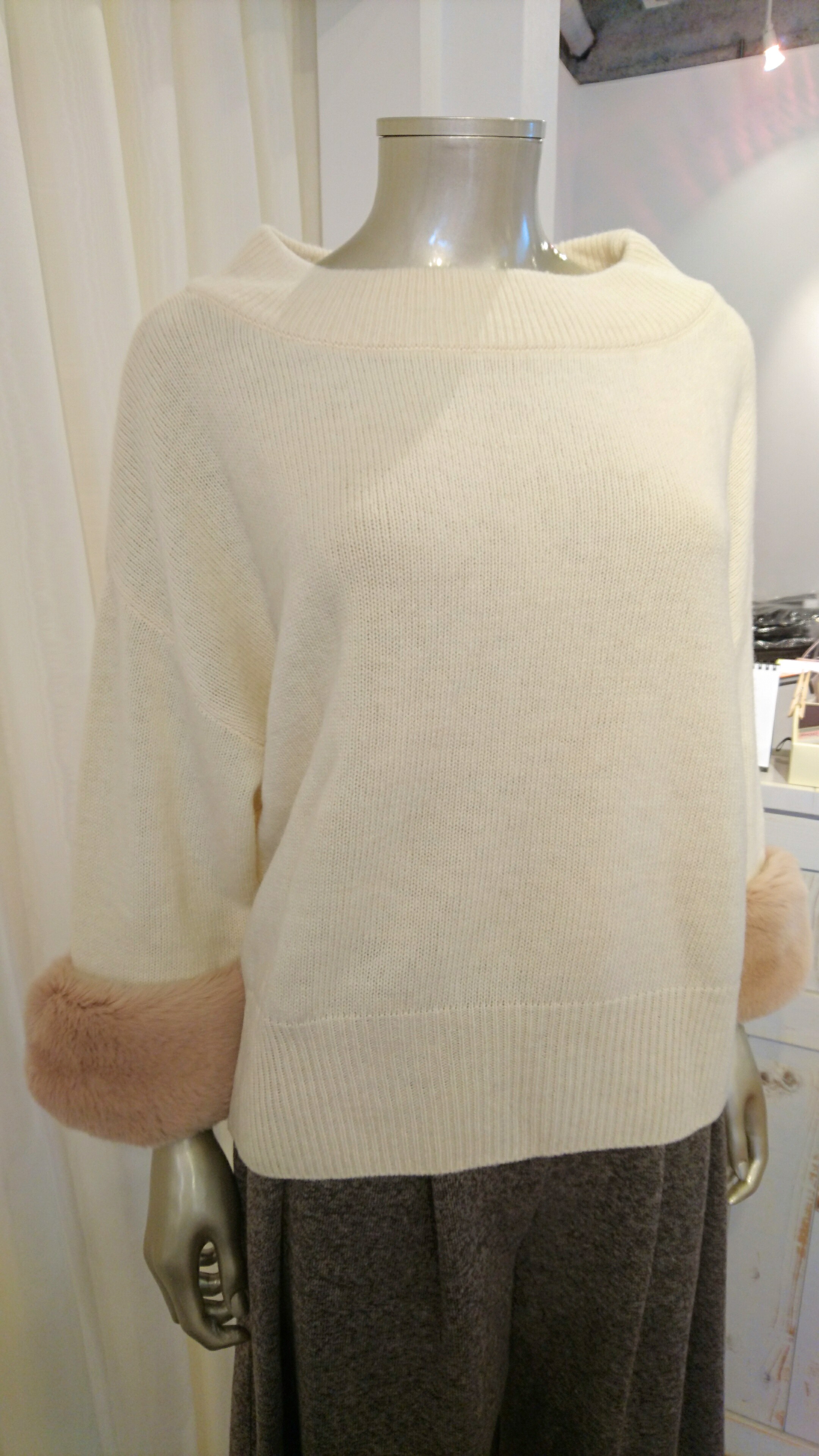 袖ファー付きニット♪ レッキスファーが付いた柔らかニット♪ ファーが取り外しもできるのでシンプルニットにも変身(^-^) ゆったりニットでふんわりと着こなしてみては~ ニット 18144円 2016年10月31日