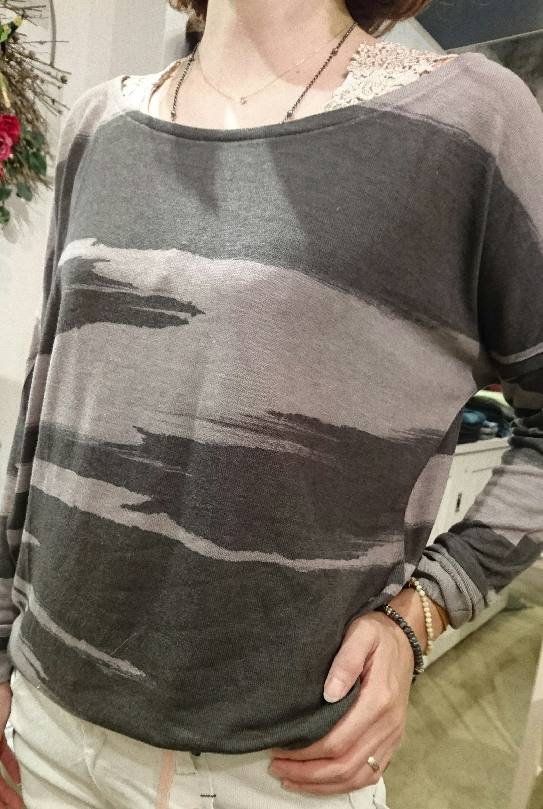 デザインシフォンブラウス ブルーグリーン カットソーの素材にシフォンを重ねた、とっても着やすいプルオーバーです ネットに入れて丸洗いできる!忙しい貴女にぴったりですよぉーー お色違いで、グレージュもございます デザインシフォンブラウス 9612円 2016年10月1日