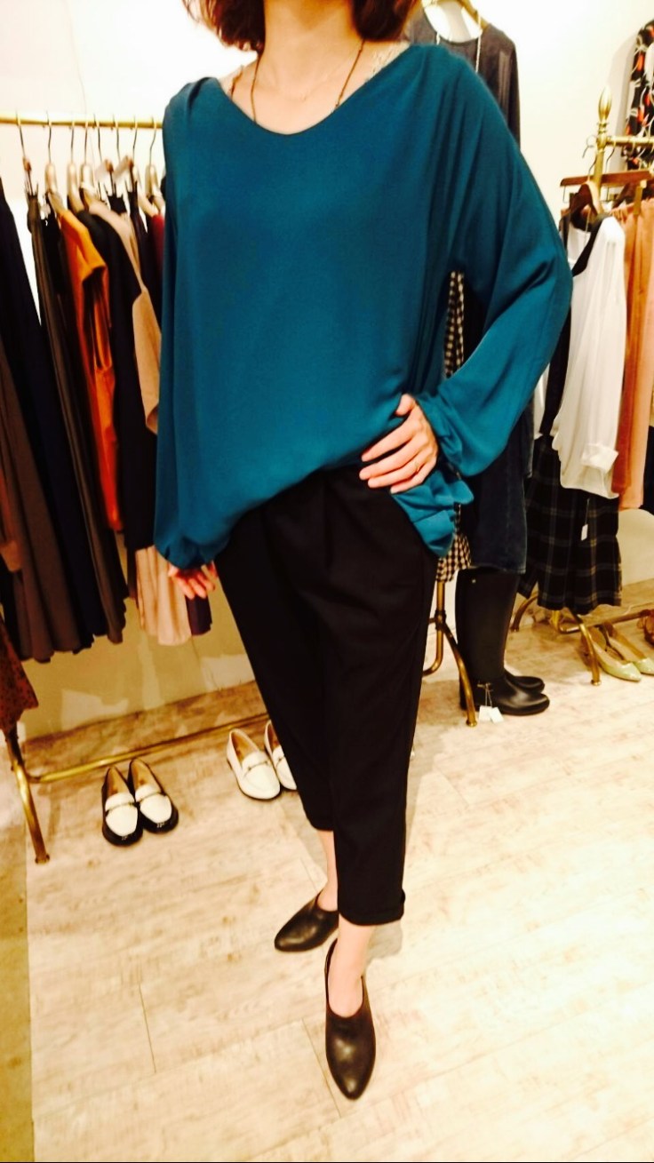 ブルーにブラウンの組み合わせ 爽やかなブルーにシックなブラウンの組み合わせが新鮮ですね はっきりしたカラーのトップスには、柔らかいカラーを合わせると馴染みが良いですよぉ〜 こちらのスカート、巻き風ですが、巻きスカートでは無いので、とーっても楽チンなのです。 ミドル丈が今年らしい♡ 2016年10月1日