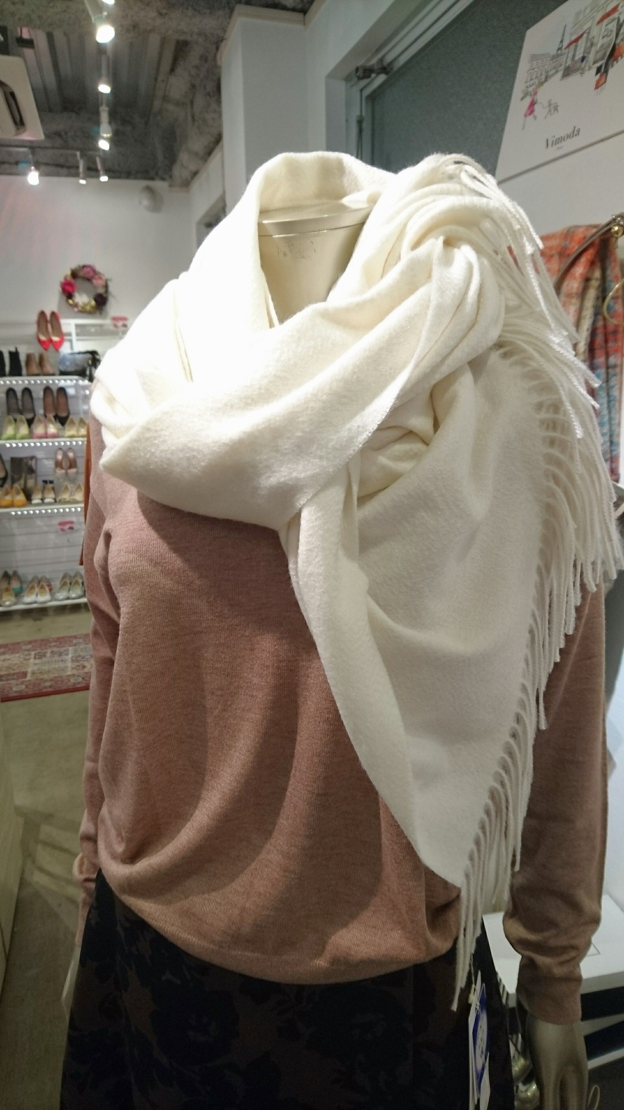 カシミア100%の大判ストール♪ とっても上質であったかなカシミアの大判ストールです♪ 無地の大判ストールは大活躍間違いなし! お色は、ホワイト、アイスグレー、キャメル、ネイビーの4色です お早めに~ ストール 24840円 2016年10月12日