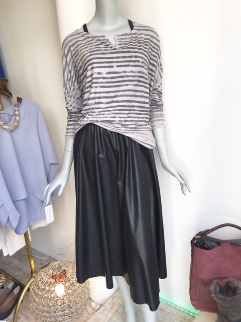 合皮スカート インポート合皮スカート入荷しました。 膝が隠れて、絶妙な丈感が大人な雰囲気を出してくれます。カットソーも、柔らかい素材で着心地抜群です。 カットソー 9612円 スカート 11880円 2016年10月12日