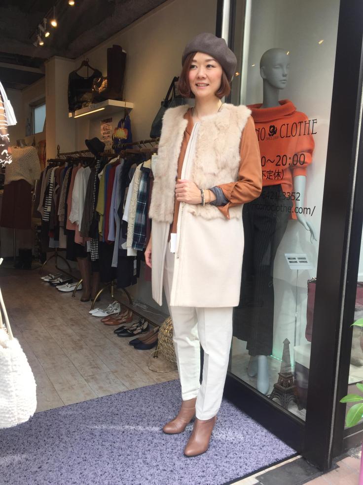 冬の白パンツとファーベスト ぐっと冷え込んで本日は11月の気温なのだとかーーっ こんな日はトレンド感たっぷりのファーベストでお出かけしてみてはいかがでしょう? 薄手でも暖かいファーベストは春先まで大活躍間違いなし‼️ コートの中にもスッキリ収まりますよぉ〜(⌒▽⌒) 昨年も直ぐに売れてまったので、気になる方はお早めにチェックしてくださいね ベレー帽 4212円 ラビットファーベスト 28080円 白パンツ 11880円 2016年10月17日