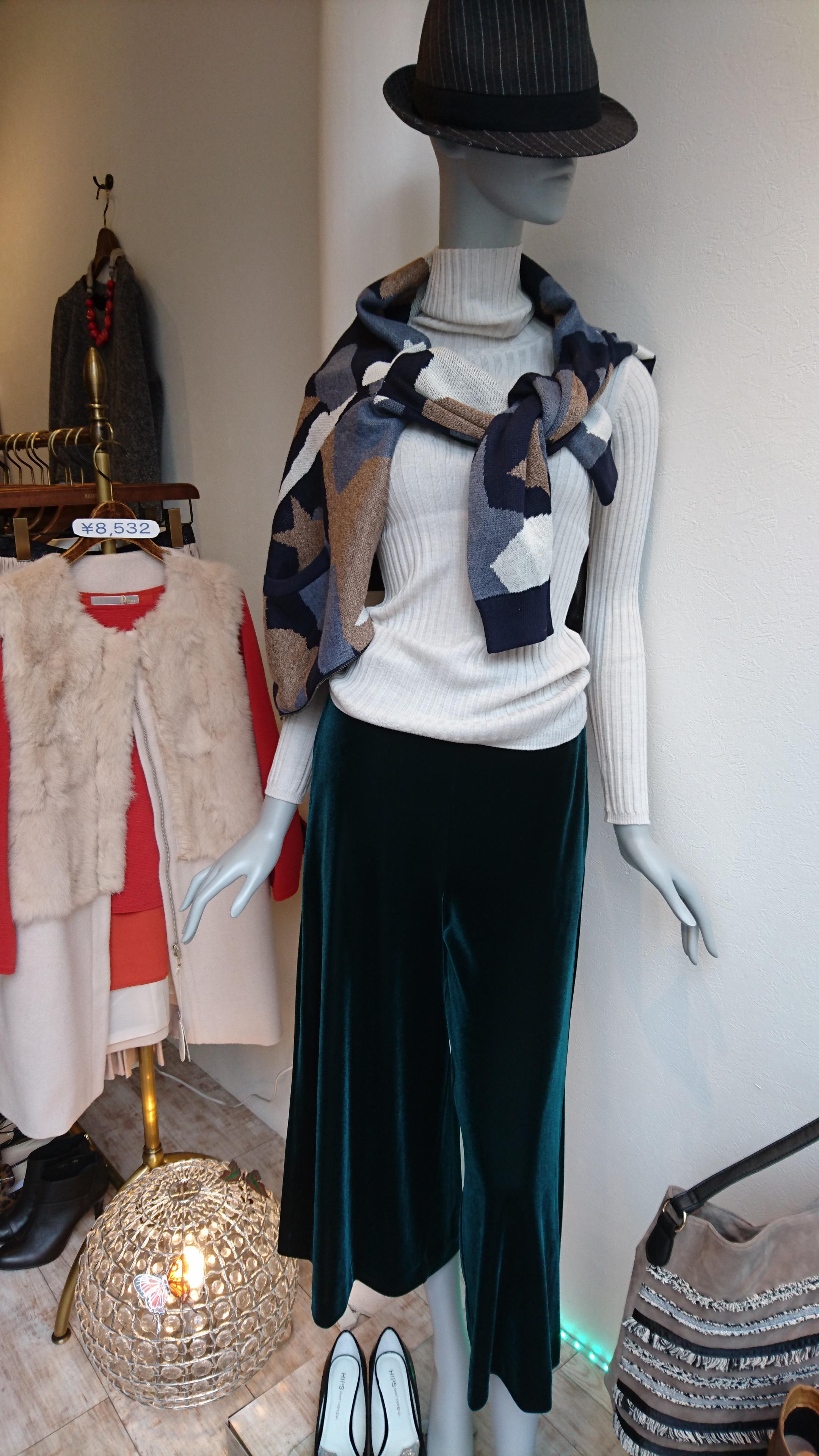 ベロアのワイドパンツとリブニット♪ 光沢感のあるベロアのワイドパンツと着心地良いニットが入荷してきました~(^-^) 暖かみのあるベロアは今年人気ですよー! ウール100%のスッキリニットは着心地抜群。ぜひ体感しにいらしてくださいねー♪ ニット 10584円 ワイドパンツ 10584円 2016年10月22日