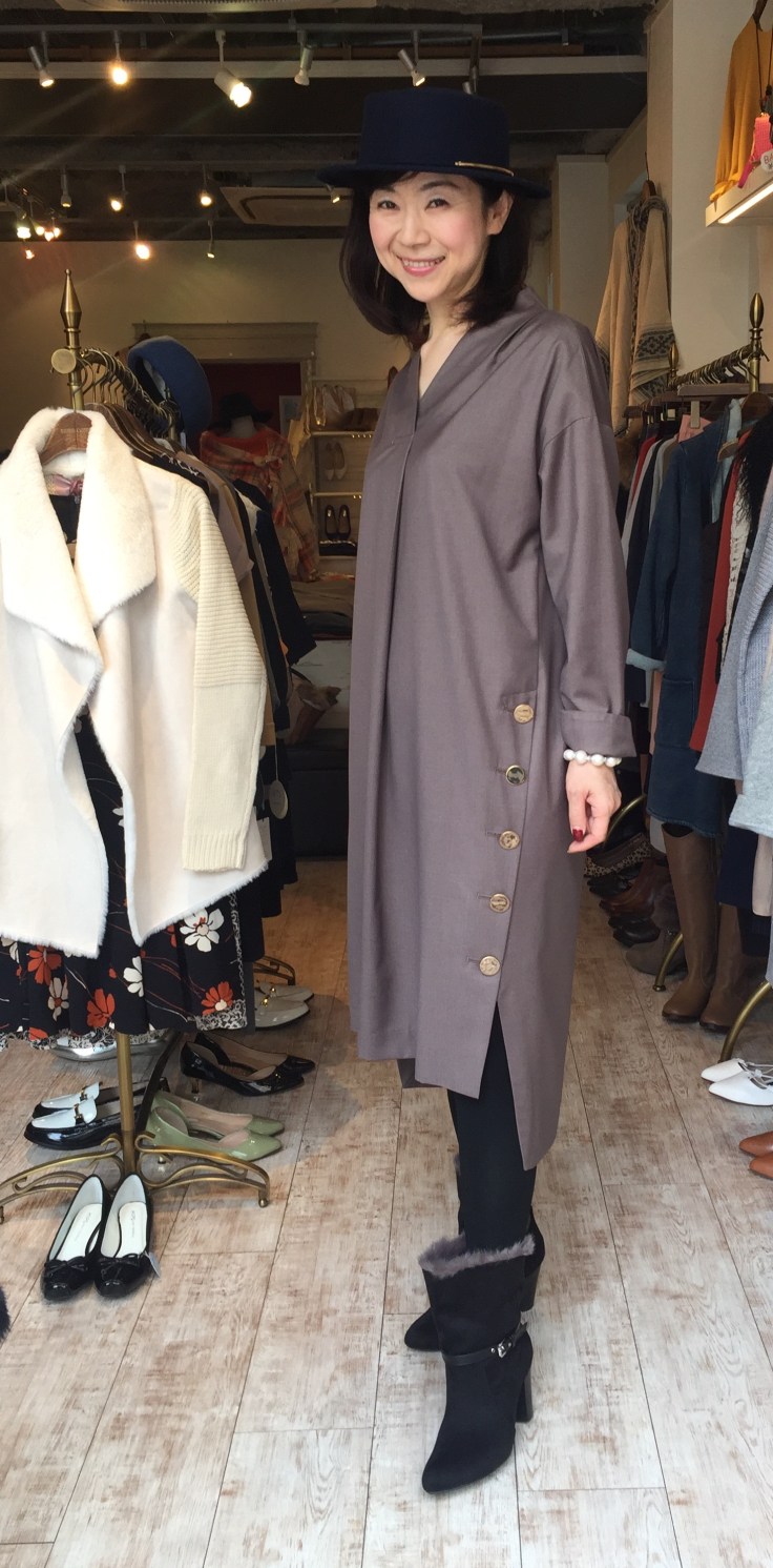 デザインワンピース Vネックと縦に並んだボタンがスタイリッシュなワンピースです サラッとシワになりにくい生地なので、お手入れも楽チン♡ 着心地抜群のワンピースですよーー ワンピース 24840円 ブーツ 13824円 2016年10月22日