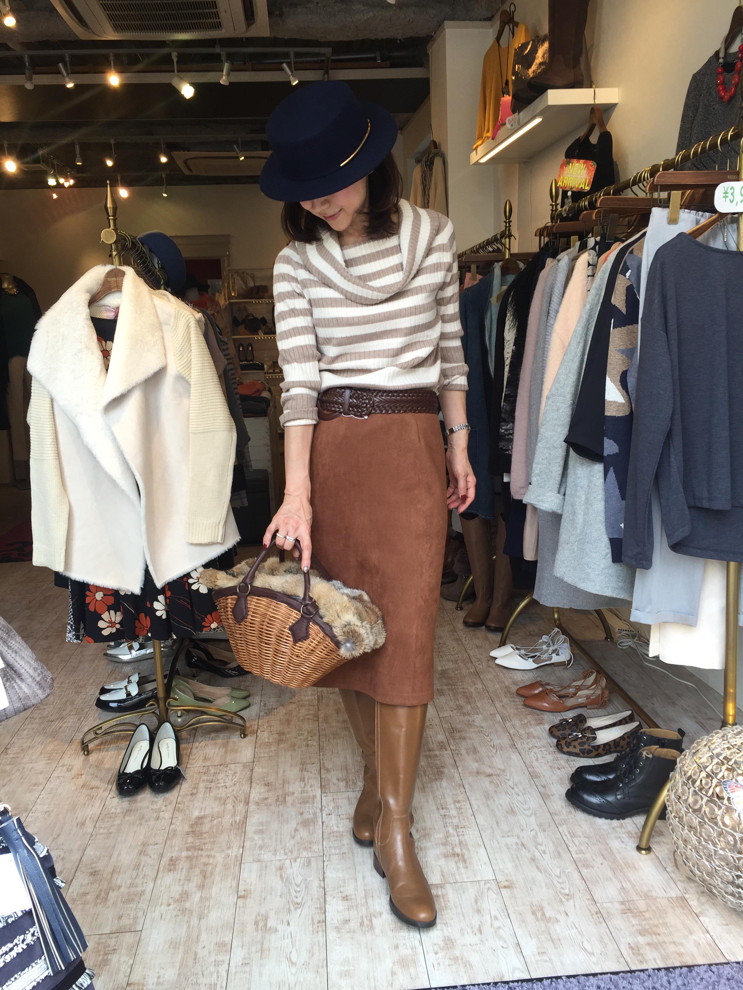 ボーダーニットとタイトスカート 爽やかな配色のボーダーニットと、ストレッチスゥエードのタイトスカートのコーディネートです。 ニットはサラサラで肌触り抜群ですので、 春まで使えるお役立ちちゃん ネイビー系のカラーもございますよぉ〜 ボーダーニット 11880円 ストレッチタイトスカート 11880円 本革ベルト 6372円 ブーツ 25920円 山崎範子 2016年10月22日