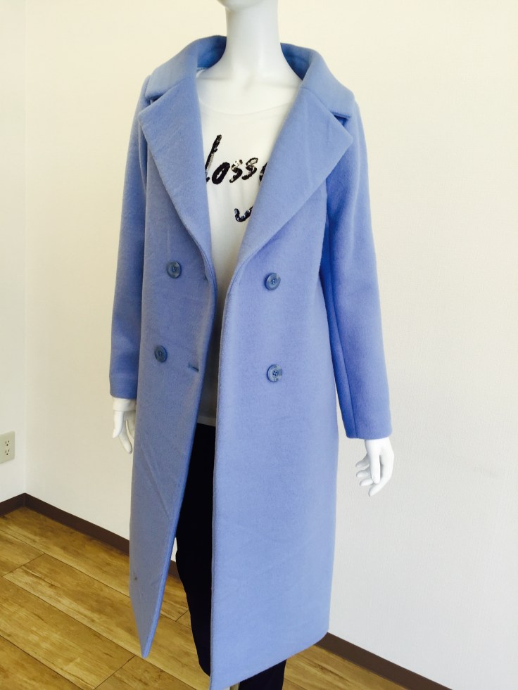 サックスブルーのコート 今年は爽やかなサックスブルーが新鮮です! ニットもカットソーも、サックスブルーが目に付きますねー クラシックな雰囲気と抜襟っぽい感じのトレンド感がミックスされたお洒落なコート。 カミングスーンです 2016年11月2日
