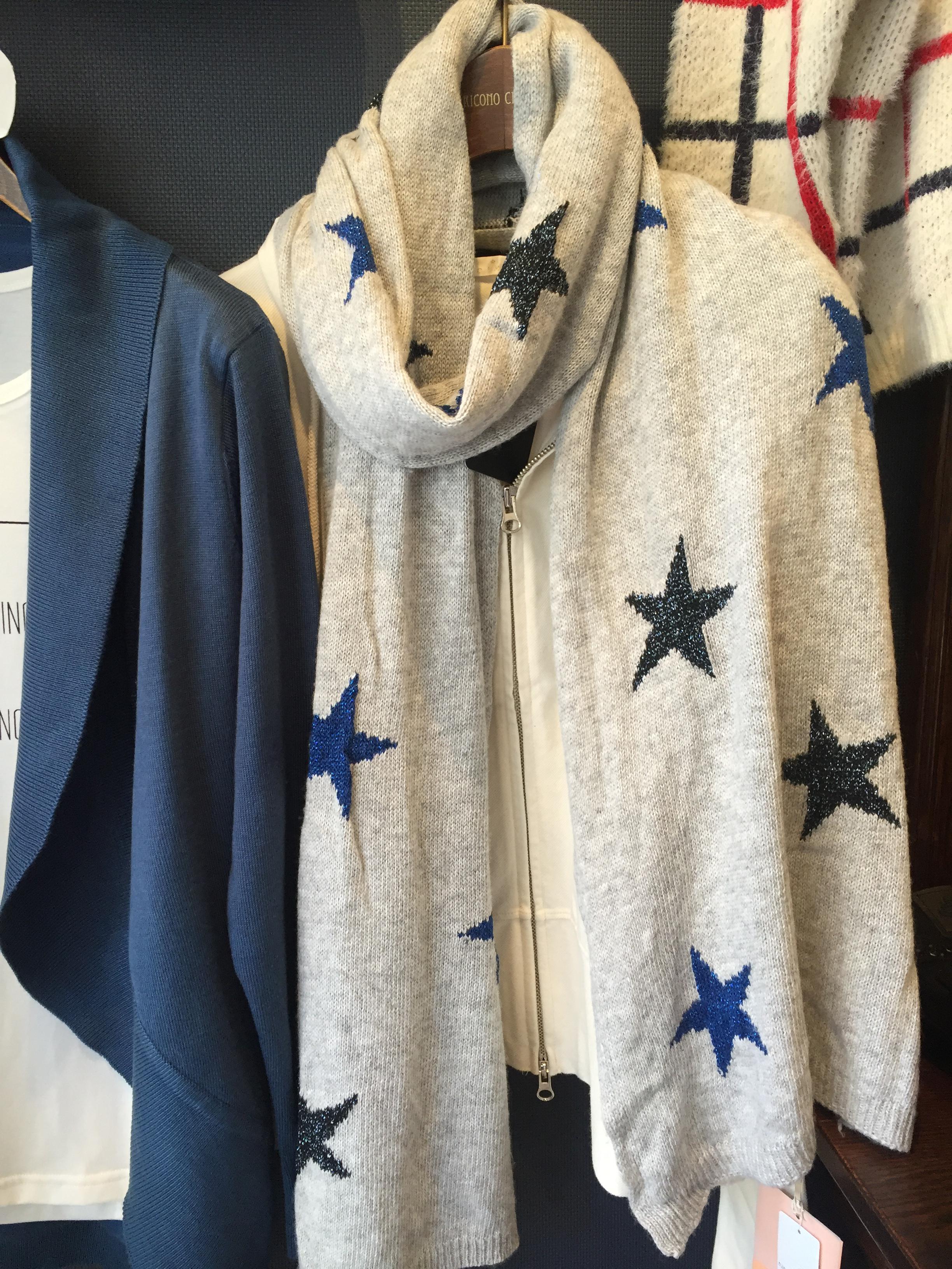 星のストール 8532円 イタリアインポートのニットストールはステキな星のモチーフ💓💓💓 グレーとネイビーの2カラーです 本日ブログを見てご来店のお客様に10%オフ‼️ で、ご案内させていただきますーーー 自由が丘にお散歩にーーぜひいらしてくださいませー 星のニットストール 8532円 2016年11月3日