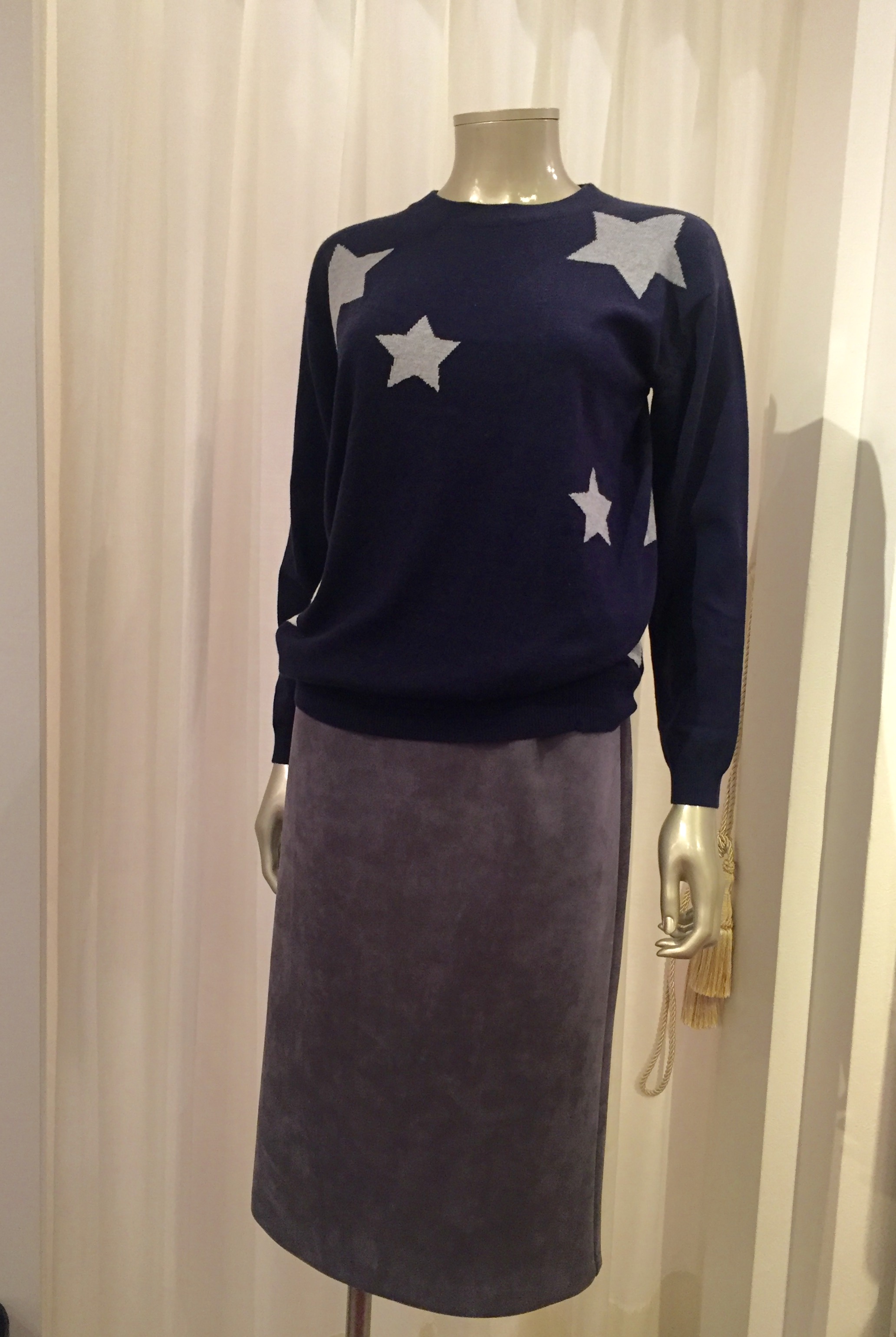 星モチーフのニット 14040円 引き続き人気の星のモチーフニットが入荷致しましたっーーー コットンアクリルの混紡なので、サラッと爽やかな着心地ですよぉ〜 ストレッチスェードのタイトスカートで、今風コーディネート入荷してみました。 春まで大活躍しますよぉ〜 ニット 14040円 スカート 11880円 2016年12月5日