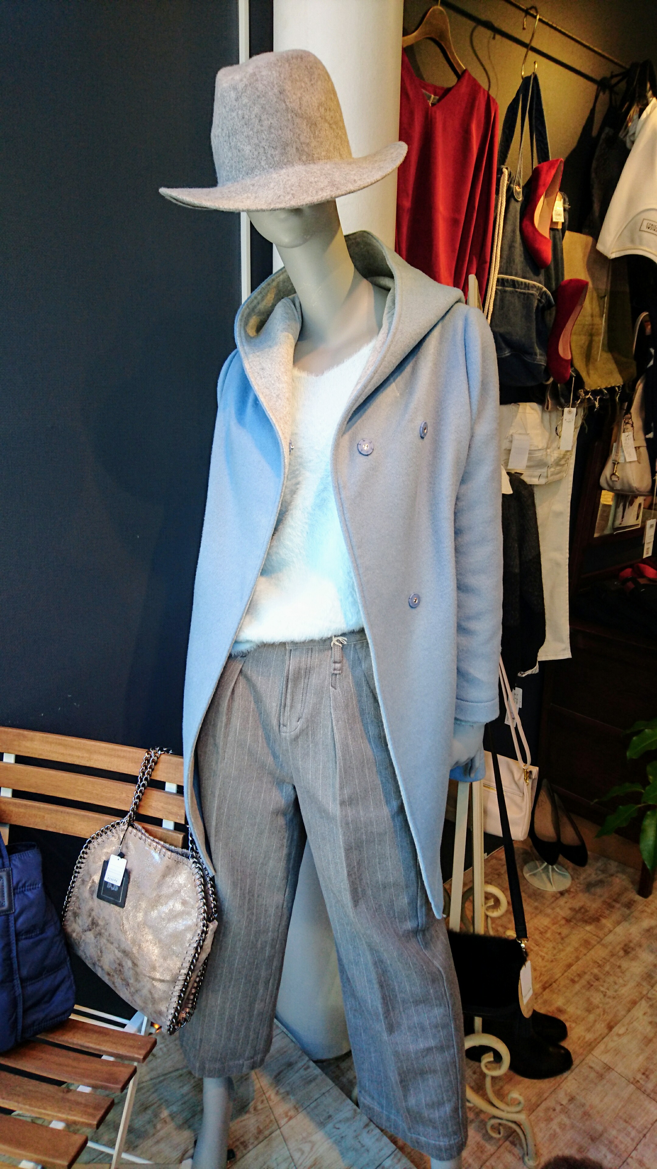 シャギーニットとキレイ色のコート♪ シャーベットカラーのシャギーニットとダブルフェイスのキレイ色コート♪ 柔らかい色味がオシャレ~(^-^) ニット 9612円 コート 37800円 2016年12月8日