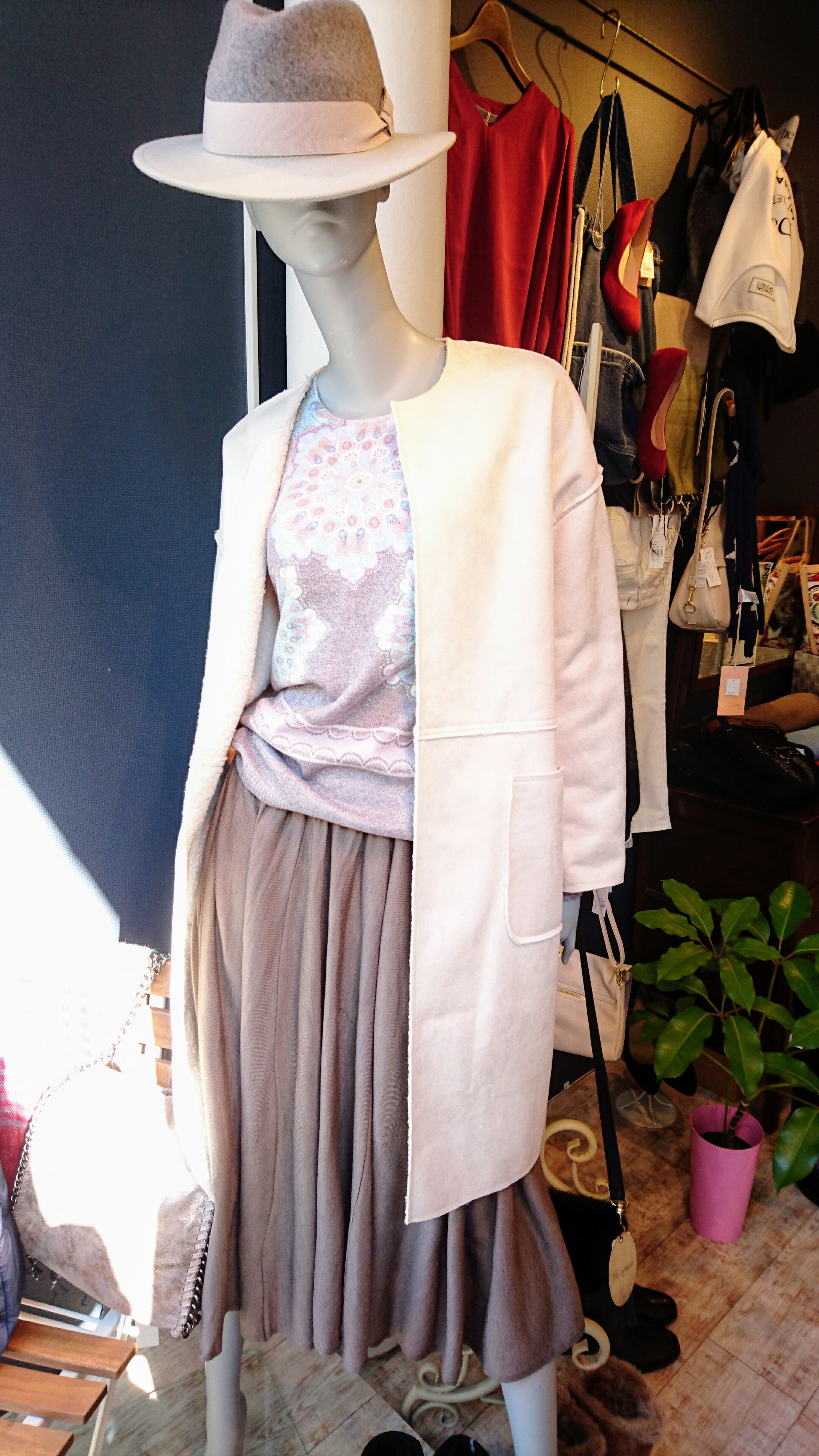 インポートニットとフェイクファーコート♪ 柄のインポートニットにリバーシブルになるフェイクファーのコートです 柔らかい色味がオシャレですよ~ ニット 8100円 コート 14904円 2016年12月9日