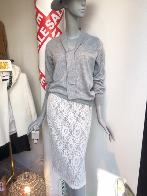 人気のボータイニット〜ラストです。 ベーシックな形に、大人なボータイデザインが新鮮なニットです。どんなボトムともコーディネートしやすいアイテムです。 ニット 5216円 スカート 9828円 2017年1月31日