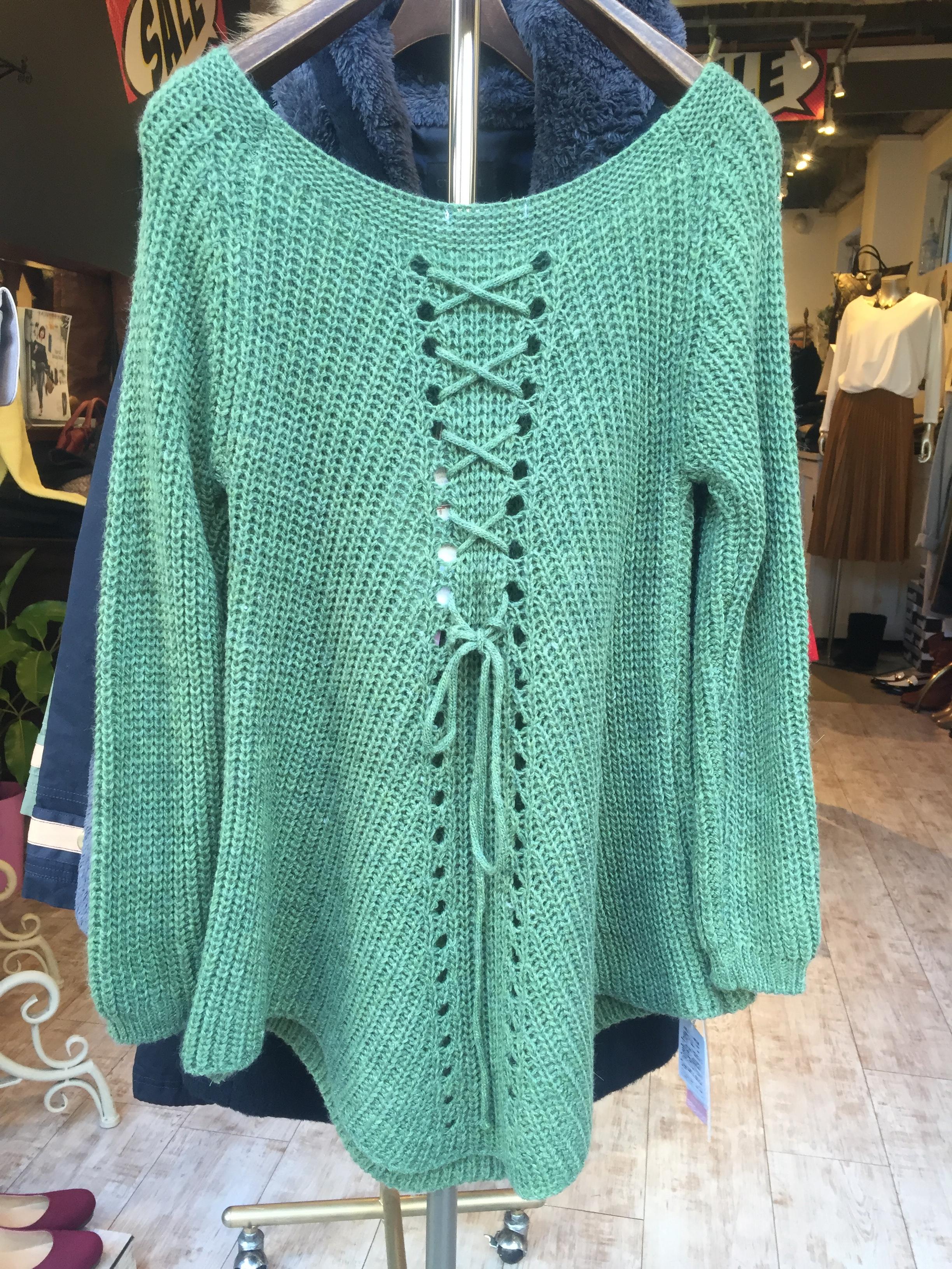 イタリアニット 6728円 イタリアから入荷のニットは、綺麗なカラーがおしゃれなバックレースアップデザイン! 女らしいデコルテが決め手です ニット セール 6728円 他にイエローもございますーーー 2017年1月5日