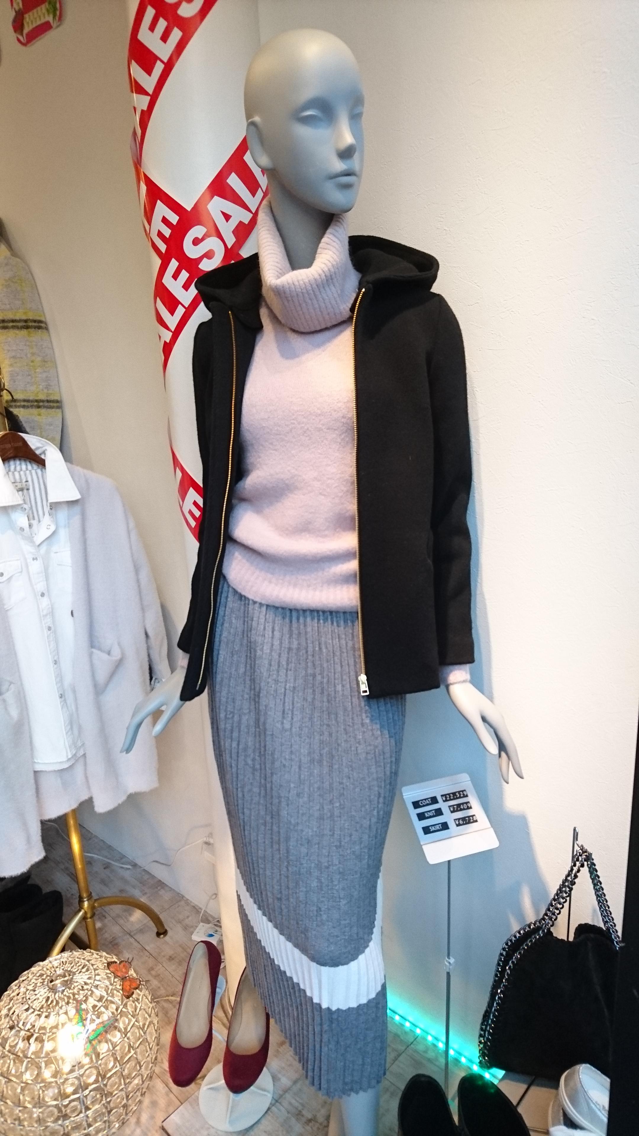 ニットのプリーツスカートと柔らかニット♪ ミドル丈のニットスカートとベビーピンクのニットのコーディネート♪ 暖かいニットはこれから重宝しそう(^-^) ニット 7409円 スカート 6728円 2017年1月10日
