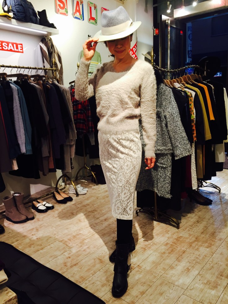 レーススカートとフワフワニット 今季人気のレーススカート‼️ こんな軽い感じなら、今からニットと合わせて、そのあとはブラウスと合わせて活用できます❤️ 素敵なお姉さん風〜になっちゃいますよぉ〜 スカートは他にカーキとチャコールグレーもございます ニット 6729円 スカート 9828円 2017年1月19日