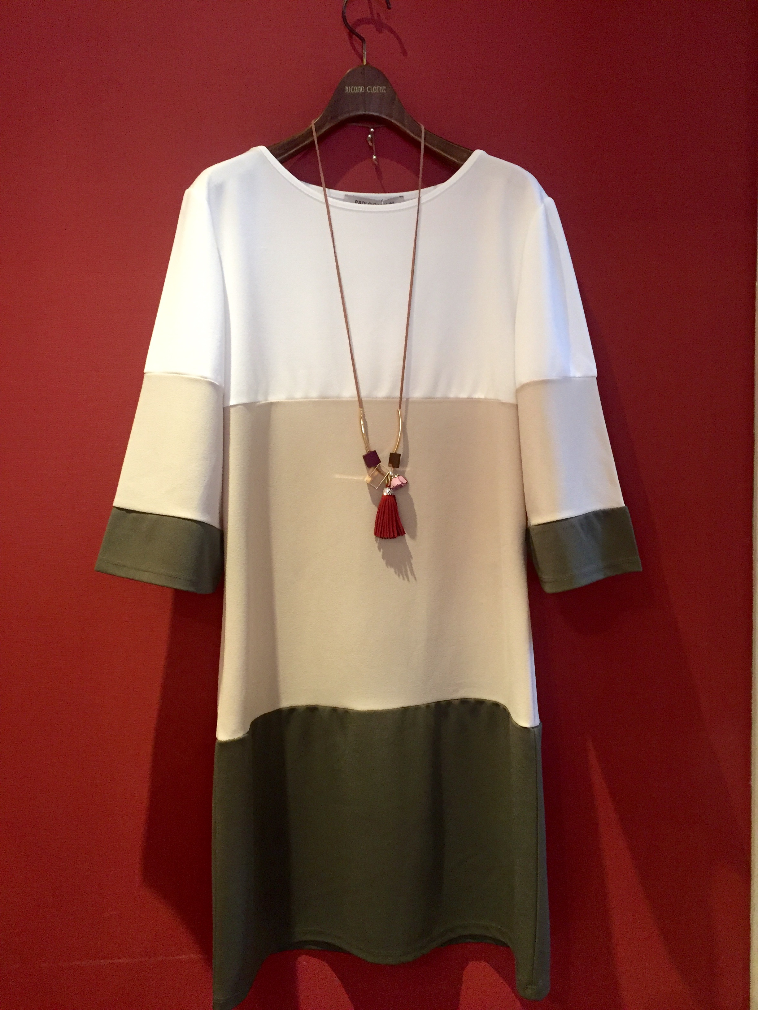 イタリアインポート 配色ワンピース イタリアから入荷した配色ワンピースは、おしゃれなネックレス付きです💓 サイズはLサイズの一点限りです ポリエステル素材なので、シワにならず、ホームクリーニングOK‼️ お袖のあるワンピースは貴重ですーーーー 配色ワンピース 15120円 2017年2月8日
