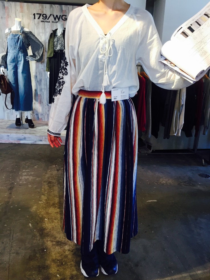 マルチストライプのスカート 5900円 今期のトレンドはこなれ感のあるエスニックなアイテムです💓 こんなおしゃれなプリントなら、ちょっぴりお先に春を満喫できそうーーーっ プチプラなアイテム、続々入荷してます 2月がチャーーンス‼️ 2017年2月19日