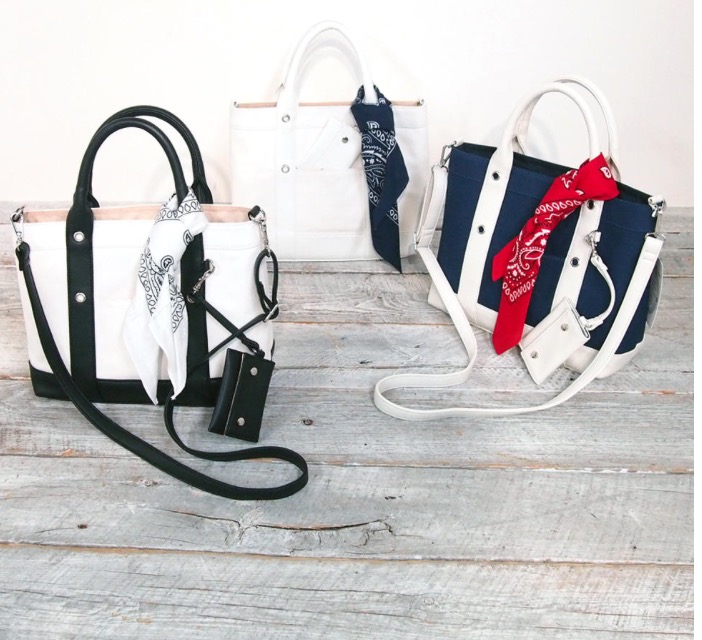 バンダナ付きのトートバッグ 4900円 定期入れと飾りのバンダナも付いたお洒落なトートバッグが、何と4900円です‼️白も黒もネイビーも素敵です 春のお出かけバッグはこれで決まりーーーー💓 2017年2月20日