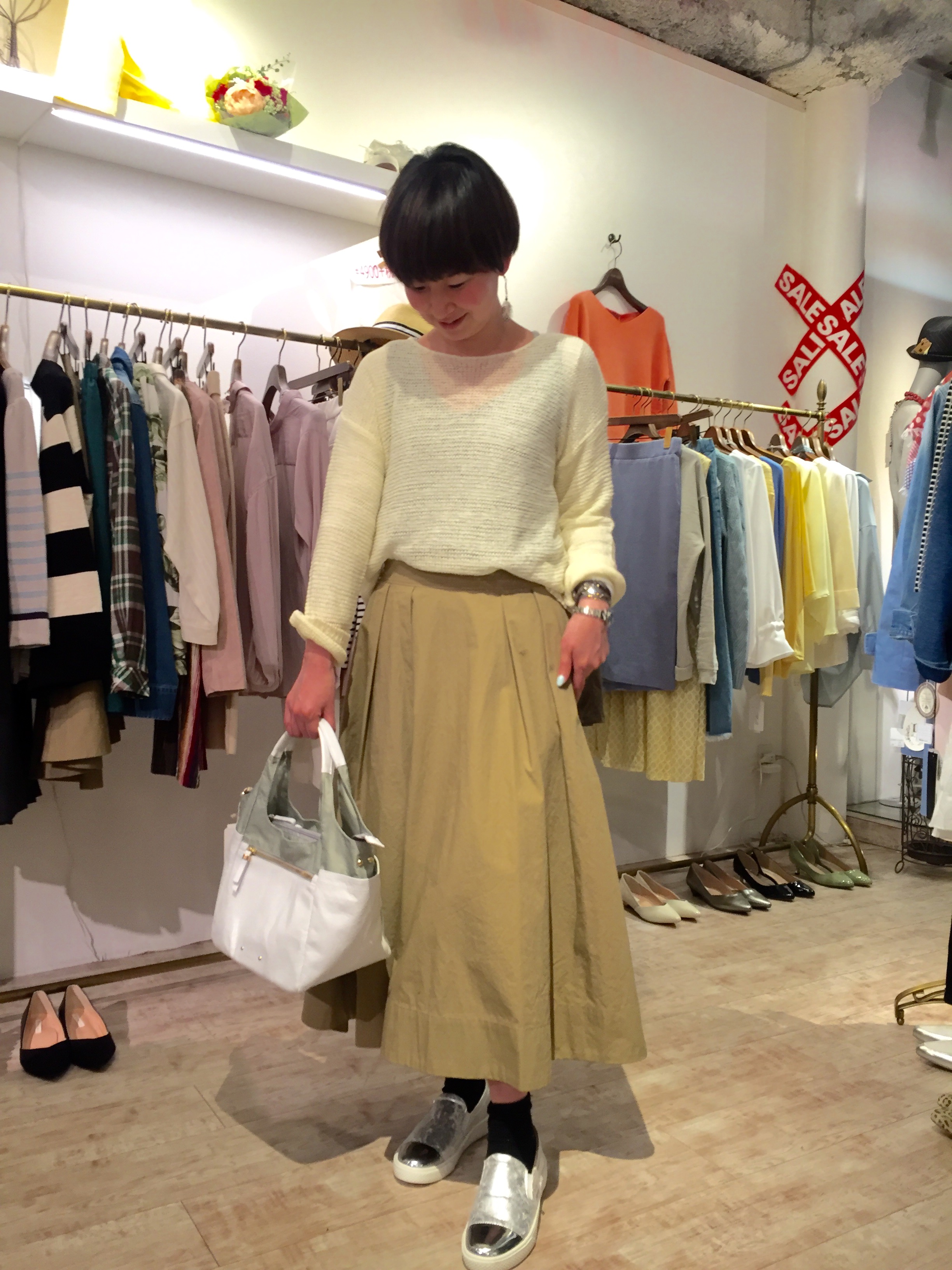 マキシ丈のシフォンスカート 3900円 今週の目玉商品は、こちらのシフォンスカートです💓 3900円の破格はこの春1番の特価です‼️ ライトグレー、ミルクベージュ、ネイビーの3カラーです‼️ 写真はカジュアルですが、ヒールを合わせたら、パーティ仕様にもなりますよぉ〜 2017年2月20日