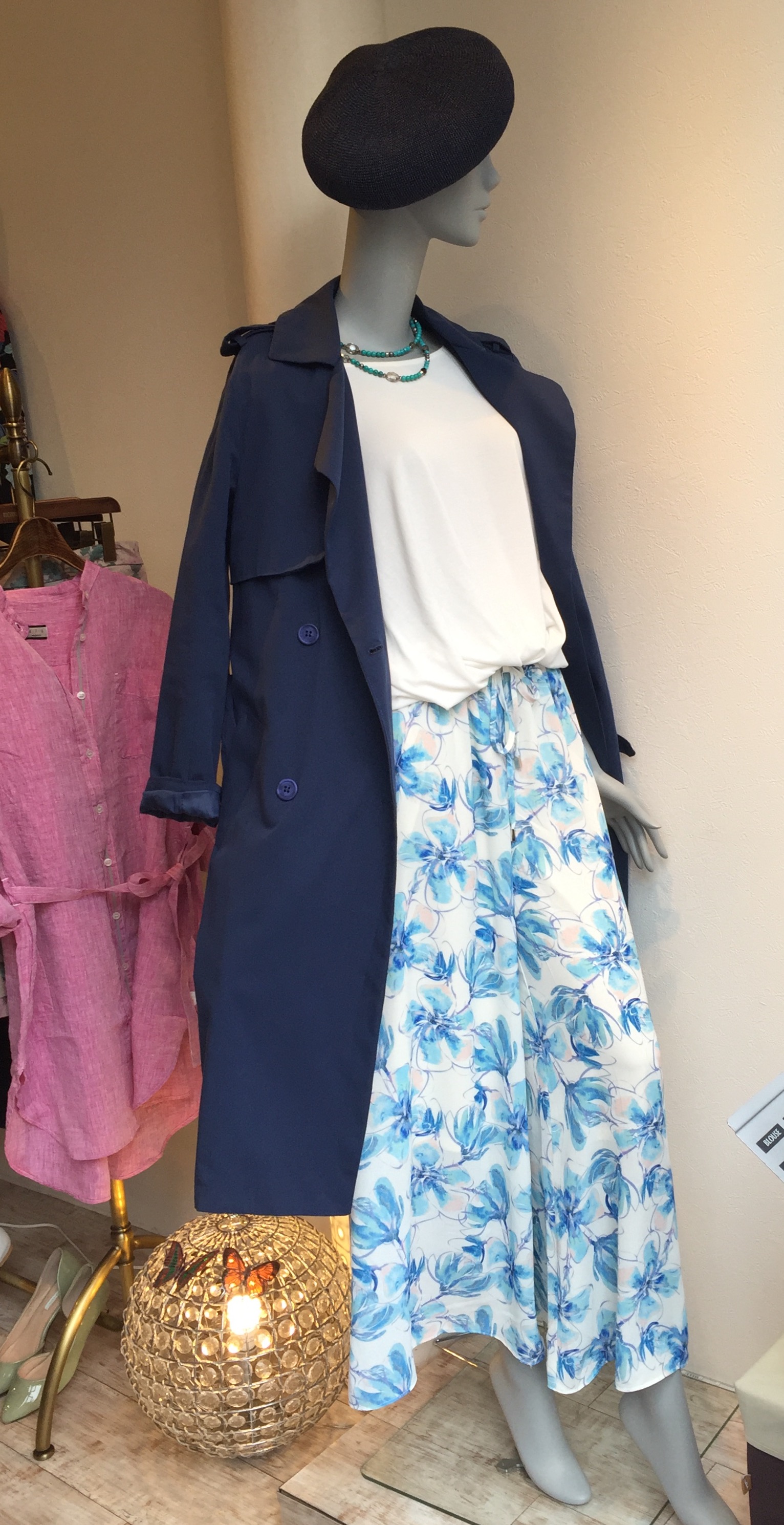 プリントシフォンパンツ 爽やかなブルー系花柄のシフォンワイドパンツが到着しました💓 イタリアのトレンチコートと合わせてコーディネート 3月の街を爽やかに駆け抜けてください シフォンパンツ 15120円 トップス 7452円 2017年3月8日