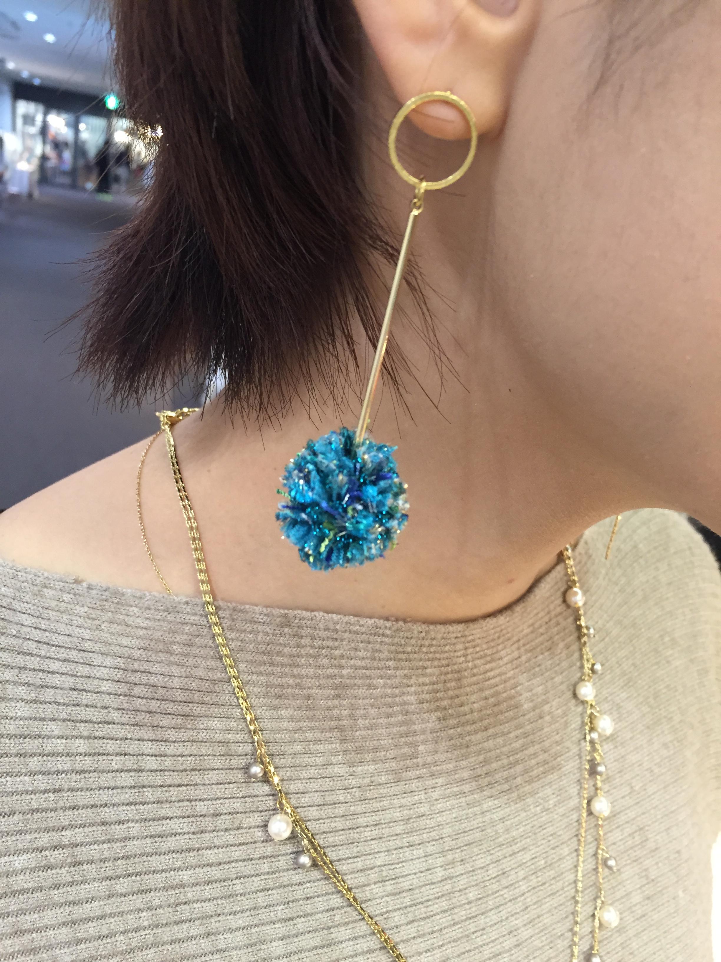 デザインピアス コロッとしたマリモみたいなモチーフは、瀬戸内のアクセサリーブランドの新作です💓 軽くって可愛いから、大人気です‼️ 今年は少し長めの大ぶりなアイテムが トレンドですよぉ〜 2017年3月8日