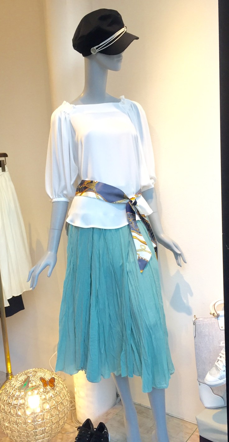 キャスケット 4900円 今季人気のキャスケット💓少しカジュアルな感じのこなれ感がGOOD👍 とろみブラウスにフレッシュグリーンのスカートとプリントスカーフでコーディネート💓 フレッシュカラーのスカートが今年らしい着こなしです お友達に褒められますよぉ〜💓💓💓 2017年3月17日