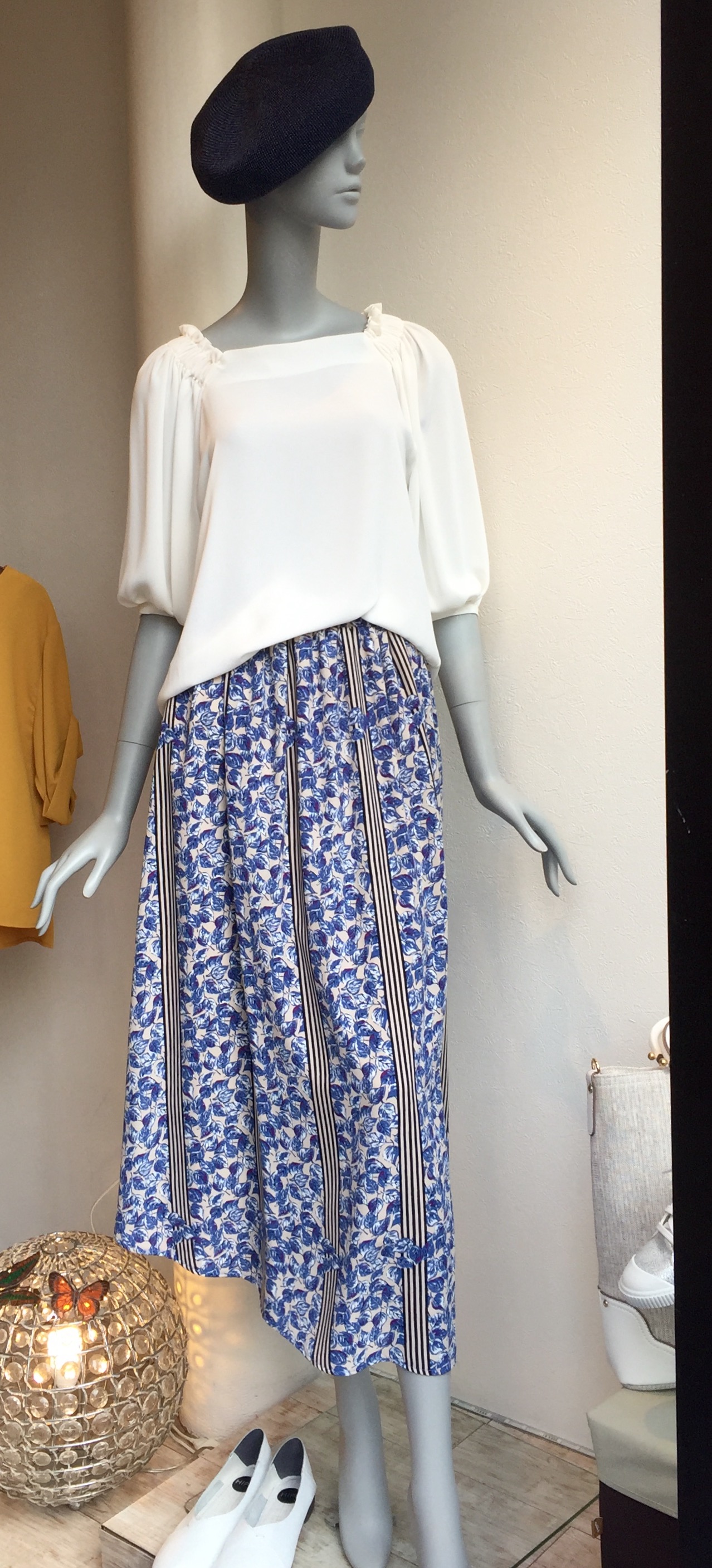 花柄プリントのロングスカート 南フランスをイメージさせる小花柄とストライプのプリントスカートです 今季のフラワープリントは大花も小花もとってもスタイリッシュ💓 ウェストがゴムなので、楽チンコーディネートにもバッチリでーす スカート 10800円 ベレー帽 3900円 2017年3月17日