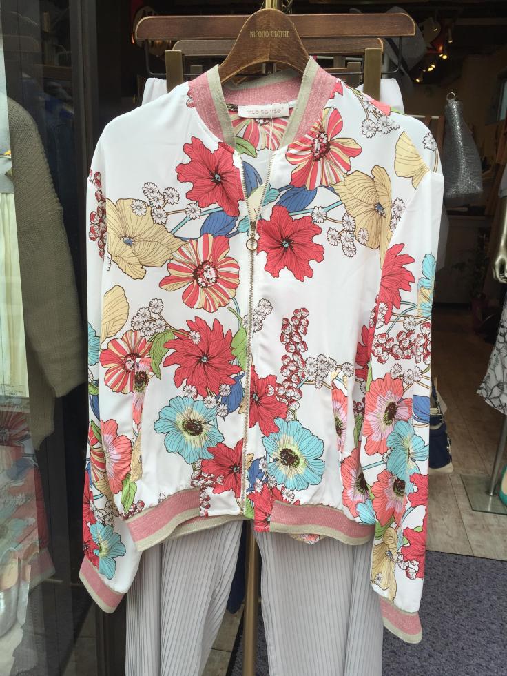 フラワープリントのブルゾン フランスからのインポートは、こんなおしゃれなフラワープリントのブルゾンです💓 サラッサラーのポリエステル素材なので、シワにならず快適ですよ お色違いでブラックもございます(⌒▽⌒) 2017年3月17日