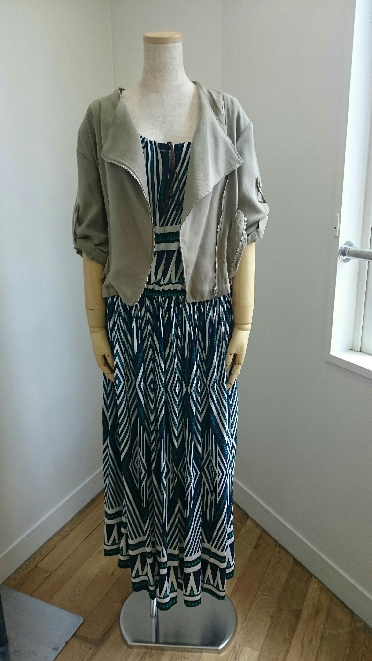 ライダースブルゾン 12800円 とろみ素材のライダースブルゾンが入荷しました💓 ネイビー、ベージュ、ホワイトの3カラーです 朝晩の冷え込みにサラッと着こなしたい💓 キャミワンピース 8900円 2017年4月30日