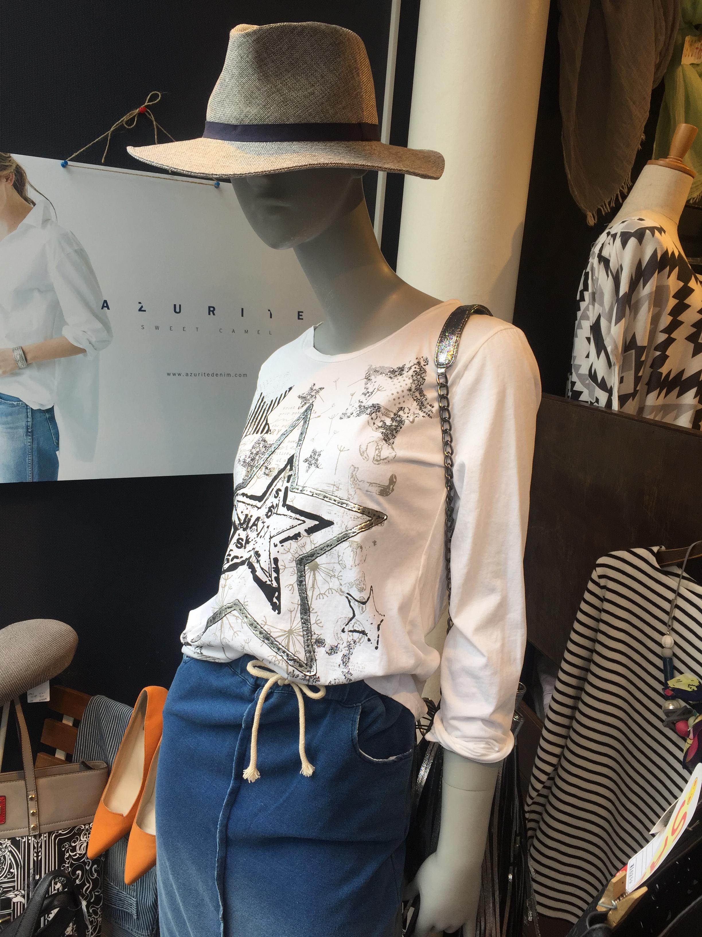星のロンT 7500円 イタリアからインポートの星プリントのロンTです 薄手で長袖のロンTは真夏まで大活躍します 二の腕隠し、日焼け防止にもロンTは必須ですよぉ〜 ハット 6900円 スカート 8900円 2017年4月6日
