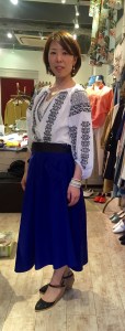 刺繍ブラウス 超特価💓💓💓 繊細な刺繍を上質なコットンに施した極上のブラウスです 💓💓💓 白にブルー、 ブラウンにホワイトの刺繍です ロイヤルブルーのスカートで爽やかにコーディネートしてみました 限定品になりますので、お早めにーーーー 2017年4月17日