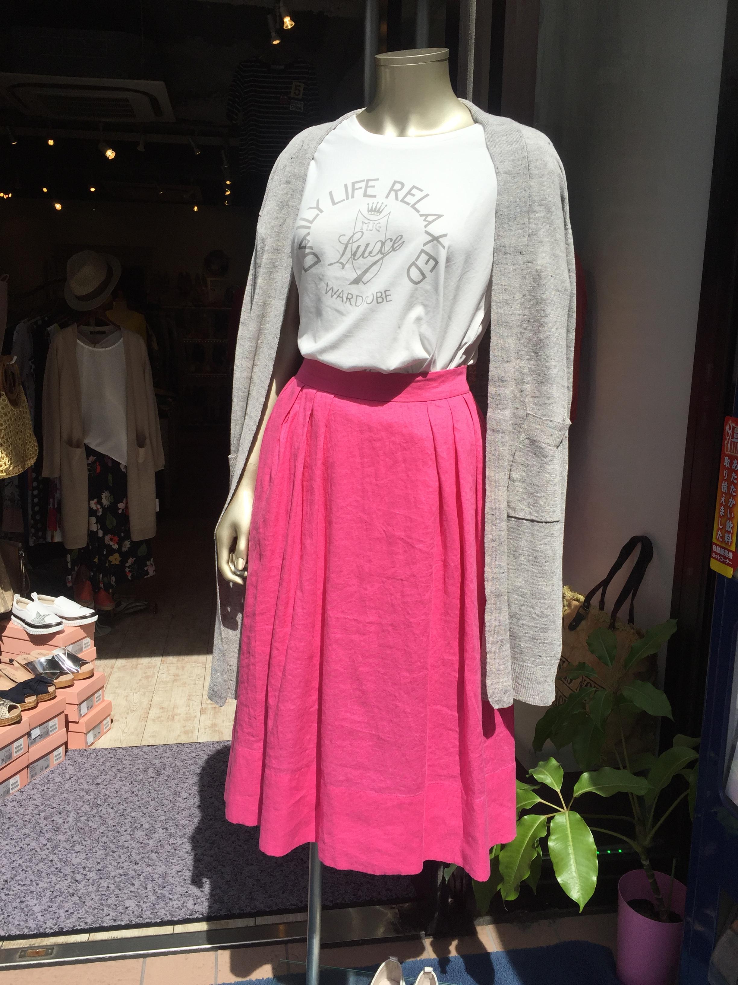 ビビットなフューシャピンクのリネンスカートが入荷しております💓