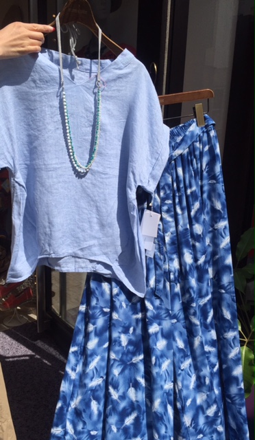 リネンブラウスととろみパンツ 爽やかなリネンのブラウスが4900円と 超特価です💓💓💓 こんな使えるブラウスならーー、と、お色違いで二枚買いの方、大変多いです プリントのとろみパンツで、爽やかなコーディネートでーーー おすすめですよぉ 2017年5月12日