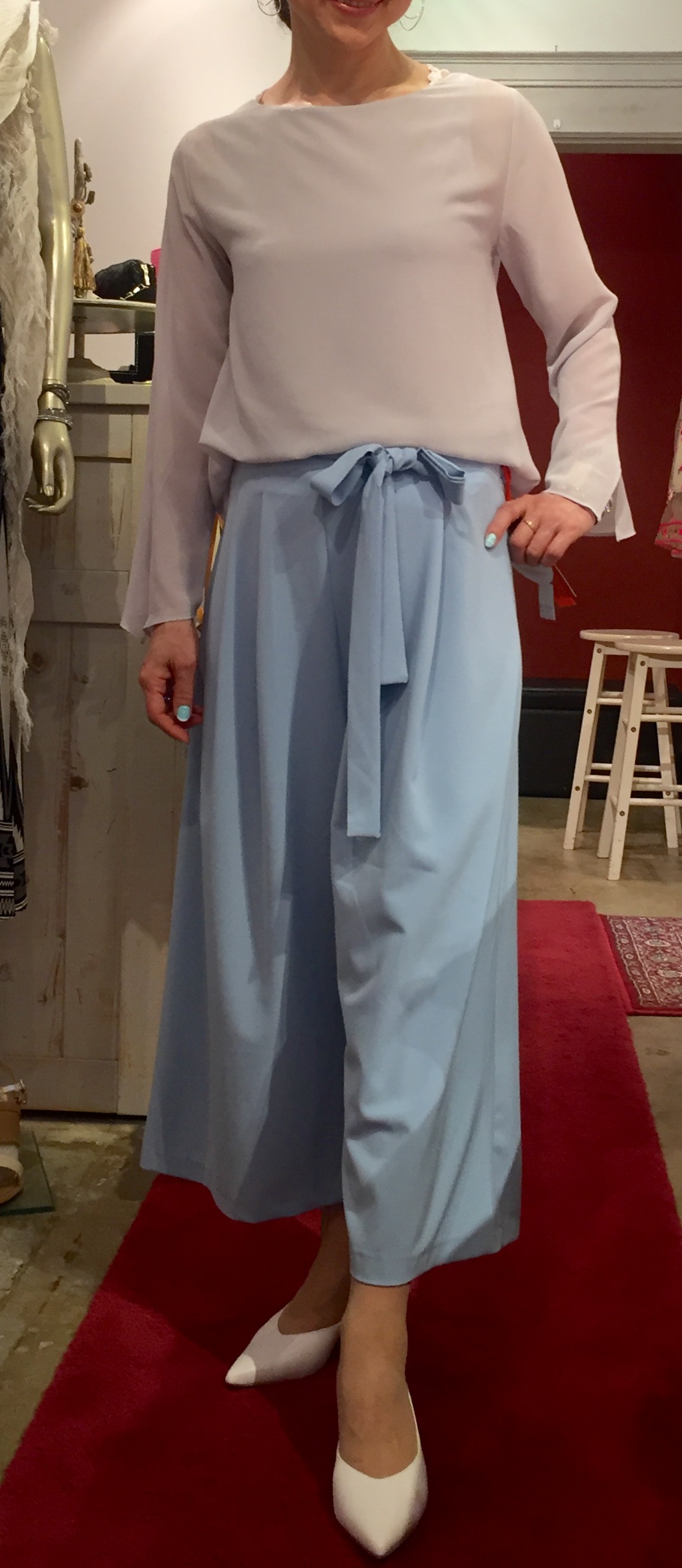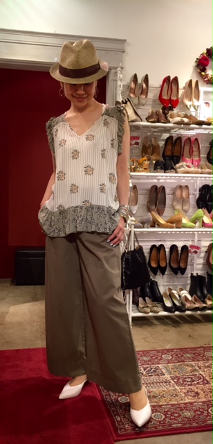 小花柄ブラウス イタリア フェミニンな小花柄のデザインブラウスが到着しました💓 甘いテイストのブラウスだから、ボトムはクールに合わせたい 小花柄ブラウス 10800円 ワイドパンツ 6900円 帽子 3900円 ミュール 9800円 2017年5月13日