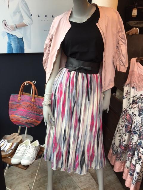 大人カワイイ💕 ピンクのジャケット 風にそよぐ白ベースのプリーツスカートに 大人カワイイピンクのジャケットをコーディネートしました💫 軽くてコンパクトなジャケットは、朝晩冷えるこの季節に大活躍です😊!! ⭐︎ピンクジャケット ¥11,880 ⭐︎スカート ¥8,532 ⭐︎Tシャツ (黒)¥6,372 ⭐︎ベルト(黒) ¥4,212 2017年5月16日