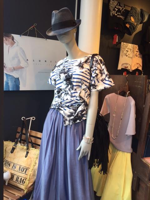 花柄ブラウスとマキシ丈のスカート ブルー 花柄プリントのコットンブラウスと、エレガントなブルーのマキシ丈ロングスカートのコンビネーション💓はいかがでしょう? スカートは、シャンパンベージュ、ペールピンク、ネイビーも入荷してきました💓😃 タンクトップとセットアップにもなりますよ スカート 14000円 2017年5月24日