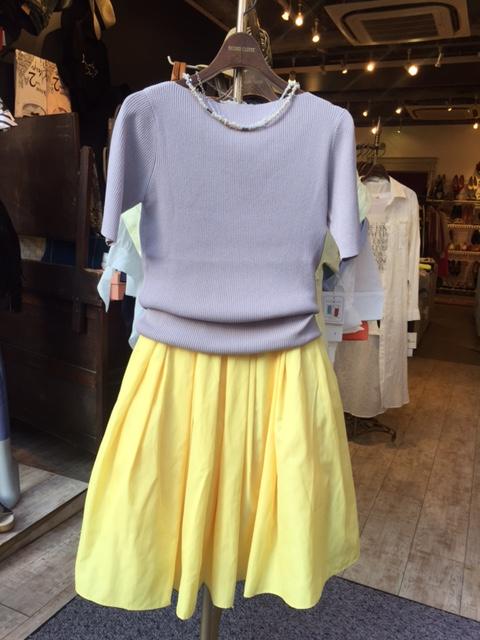 ふんわりスカート 8900円 イエロー 今年人気のカラースカートです。 イエロー、ピンク、グリーン、ブラック、ネイビー、ベージュと6カラーを揃えました💓 女子力上がりますよぉ〜 素材はポリエステルなので、お手入れも楽チンなのでーす シックなグレーを合わせて、都会的な配色にしてみました💓 2017年5月24日