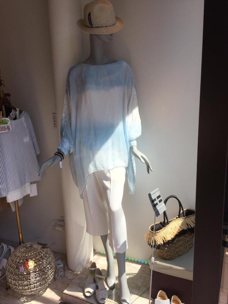 シフォン・オーバーブラウス¥11,880- イタリー製の涼しげなシフォンブラウスが入荷しました♪ 肩から袖部分にレースが施されて おしゃれ感バツグン😍✨✨ リゾート🏝のお出掛けにいかが?💓 2017年6月17日