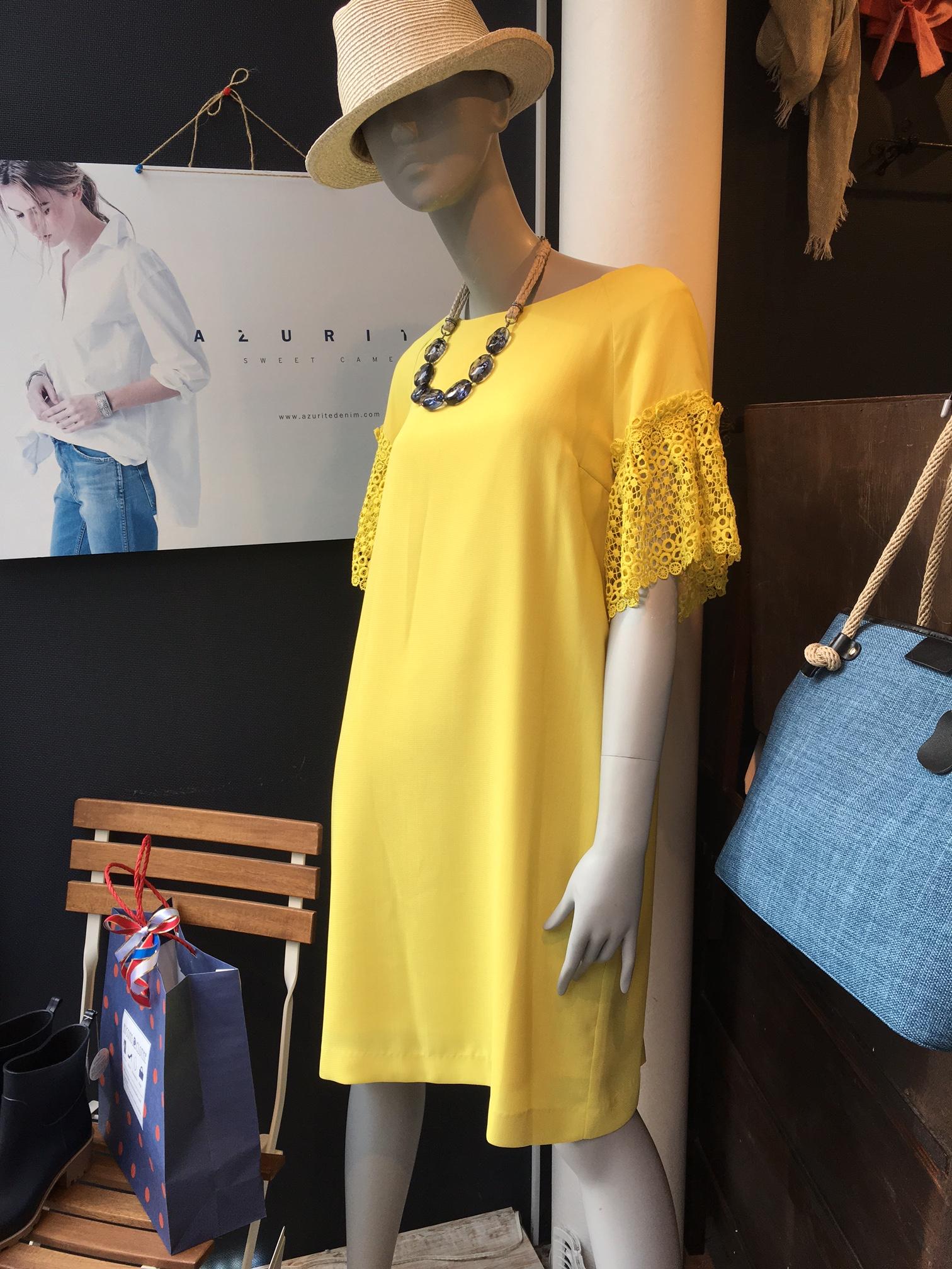 シンプルな形のワンピースに袖のレースが可愛い1着が入荷しました。