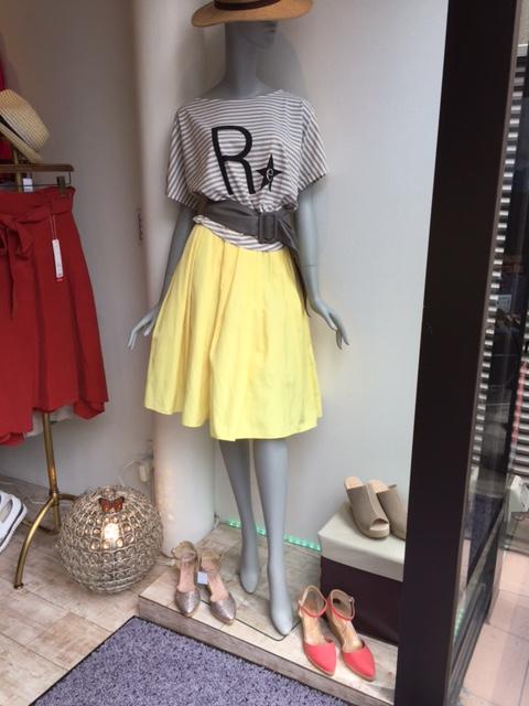 黄色いフレアスカート💞✨💞 中にペチが付いたカワイイフレアスカートです⤴︎⤴︎☘️✨☘️ 鮮やかなレモンイエローが、夏の日差しにとっても鮮やかに映えそう…😍 定価¥9,612- 今ならSALE価格、ここから30%オフですよ〜♪ カットソー¥9,180-(ここから20%オフ) 2017年7月2日