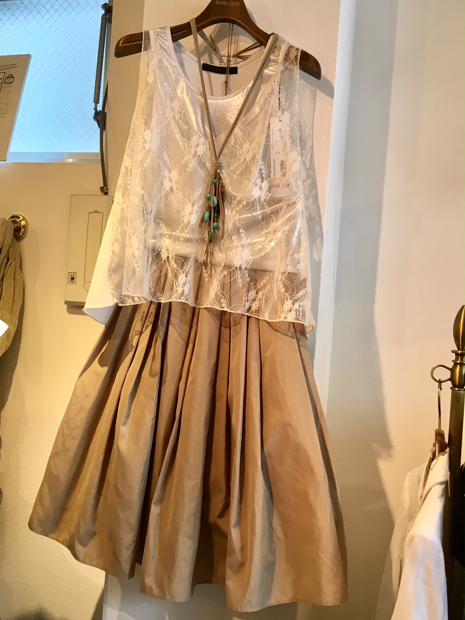 レースキャミソール ¥6,372 大人美しいレースキャミソールをメインに、ブラウンでコーディネートしてみました😊⭐︎ デニムなどのパンツスタイルにも、おしゃれに決まる一枚です💕 レース切り替えキャミソール¥6,372 キラキラタンクトップ¥4,234 スカート¥6,729ネックレス¥10,800 2017年7月6日