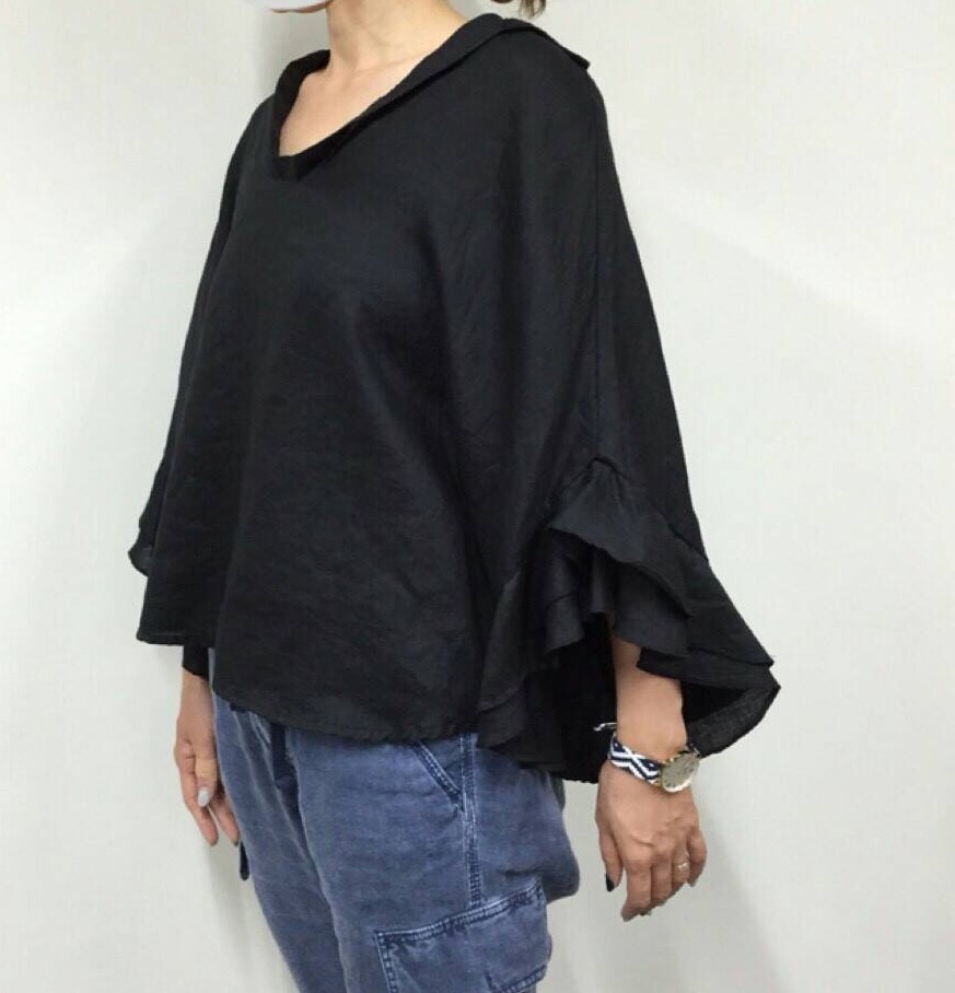 リネンブラウス 30%オフ‼️ トロミのある上質なリネンのブラウスです 前回すぐに完売の、人気のブラックと新色のネイビー、ベージュで入荷します 抜襟で、ボリューム袖が今年らしいデザインです💓💓💓 11880円➡︎8316円 2017年7月6日