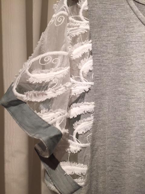 フェザーモチーフ袖のカットソー 5972円💓 SALE これは、びっくり破格‼️のカットソーです オーガンジー生地にフェザーモチーフなんて、とってもおしゃれです 白とグレーの2カラーです 2017年7月6日