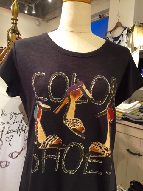 デザインテイシャツ 30%オフ‼️ キラキラ英字とハイヒールプリントのおしゃれなテイシャツは限定品です💓💓💓 黒は一枚で透けないから、暑がりさんにはピッタリですね‼️ お色違いで白もございますよぉ〜 二の腕が細く見えるのも嬉しい💓☺️ コメントは受け付けていません。