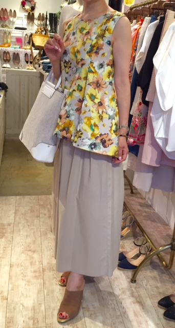 フラワープリントのプルオーバーとコットンパンツ 30% オフ‼️ 水彩画みたいなフラワープリントが素敵なプリントのプルオーバーに、コットン素材のワイドパンツを合わせたコーディネートです どちらも大変お得なセールプライス💓💓💓 パンツはブラックもご用意しております ウェストがソフトなゴムなので、履き心地も楽ちんですよぉ〜 ブラウス 7203円 パンツ 7203円 バック 7452円 2017年7月26日