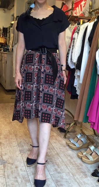 ペイズリープリントのスカーチョ 30%オフ‼️ 鎖骨美人になれそうな、広くデコルテの空いたブラウスと新作のペイズリープリントのスカーチョでコーディネートしてみました‼️ シックな秋の着こなしを先取したい貴女にお薦めです(⌒▽⌒) スカーチョなので、自転車通勤の方にもお薦めですよぉ〜💓💓💓🚴 ブラウス 7204円 スカーチョ 8921円 サンダル 8640円 2017年7月26日