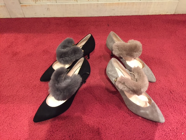 ファー付きパンプス💓 スウェードパンプスに、秋冬のコーデには欠かせないファーをあしらって、 オシャレ感満載❣️😆✨✨✨ 写真の様にベルトを前に持って来ても良し💓…クルンと後ろに持って来て、バックスタイルに飾るも良し💓💓 お好みの2wayが楽しめますよ〜 (´∀`*)♪✨✨☘️ パンプス ¥17,280- 2017年8月30日