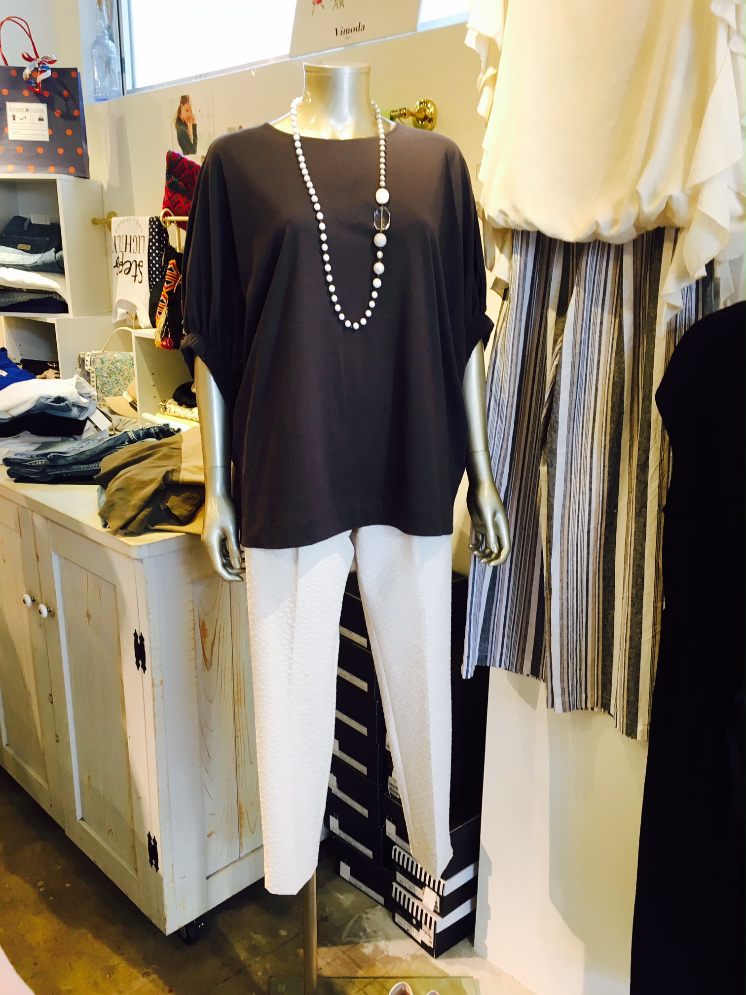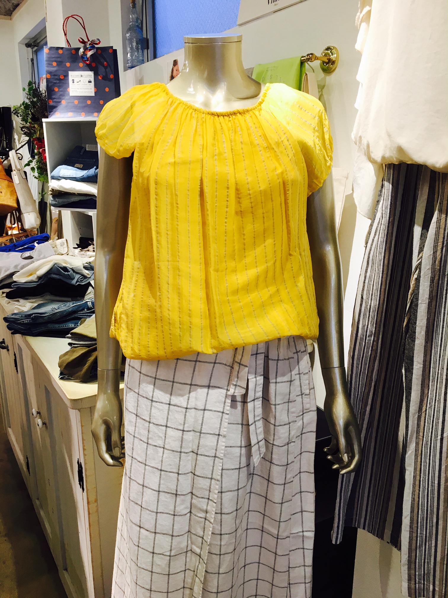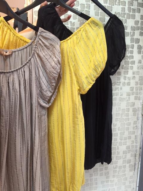 イタリア製 ブラウス イタリアから、光沢のある半袖ブラウスが入荷しました😊シルバーのラインがキラッと光る上品な一枚です💕😊お色はイエローのほか、ベージュと、ブラック。お値段は¥7,452です。 2017年8月3日