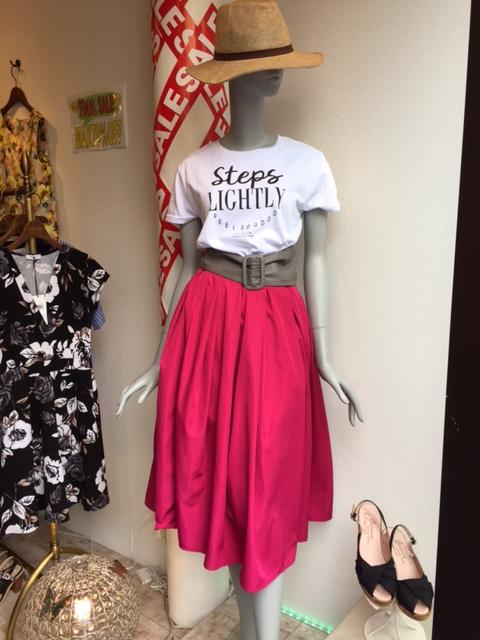 フレアスカート☘️✨☘️ 光沢があって、張り感もあるフレアスカートが入荷しました❣️⤴︎⤴︎✨✨ Tシャツと合わせてカジュアルに… ブラウスと合わせてドレッシーに…☘️ コーディネートを楽しめますよ〜(´∀`) 他に、マスタード、ネイビー、ベージュがあります。 スカート ¥9,612- 2017年8月13日