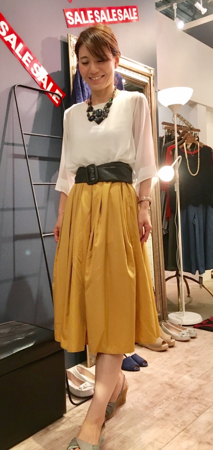 マスタード色のフレアスカート 春から秋まで長期間活躍してくれるマスタード色のフレアスカートです💕👍💕軽くて着心地も抜群!ウエストはゴムです😊 お値段は¥9,612 iPhoneから送信 2017年8月14日